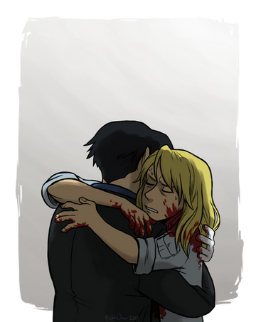 I also love the tender mood in this drawing. It's lovely. Riza's expression is great.