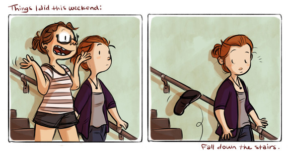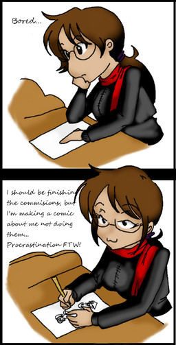 I get so engrossed in my work that I never notice if someone's approaching me until they're practically on top of me or he/she enters my work space suddenly and my reaction is pretty much the same as this strip- I practically hit the ceiling. LOL. I'm easily startled so I can definitely relate. ...I really should install a rear-view mirror type thing on the edge of my computer screen so I can be more aware of what's going on behind me because one of these days I'll give myself a heart attack if I don't learn to calm down. haha. Love this strip.