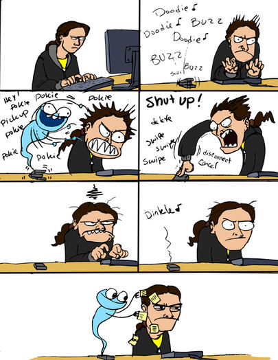 never happens to me, usually I get bothered when I'm trying to write stuff (which is even worse, then I'm called an asshole for wanting privacy) nice comic!