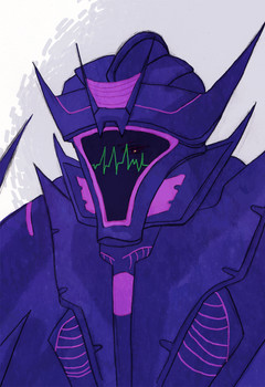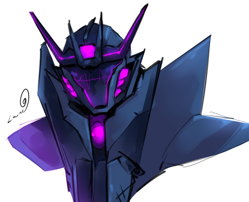 His face looks like the Decepticon logo, I like it, good job. XD