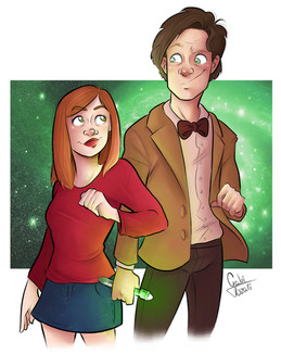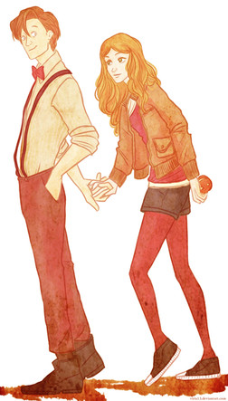 Gorgeous cartoon renditions, seeing Amy and 11th brofist made me smile. They're definitely planning something