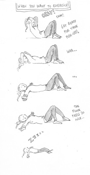 Ha! Sounds like my boyfriend. "Oh go one it's easy, you can do it." And after five seconds I was like eff me I'm starting to like my curves. >->;; I regret telling him to MAKE ME do some exercises. >->