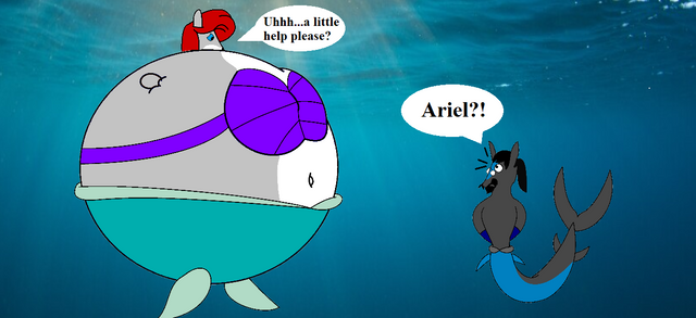 Lady in a swollen predicament while in mer-form.Wolf Avlar Fursona belongs to .