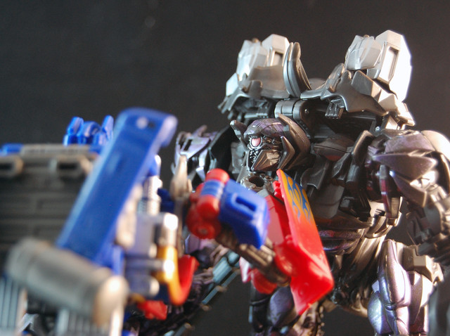 Optimus Prime: You wish to speak with me Megatron? (sees Soundwave) I thought we agreed to meet alone.Megatron: Soundwave is merely here for my protection.