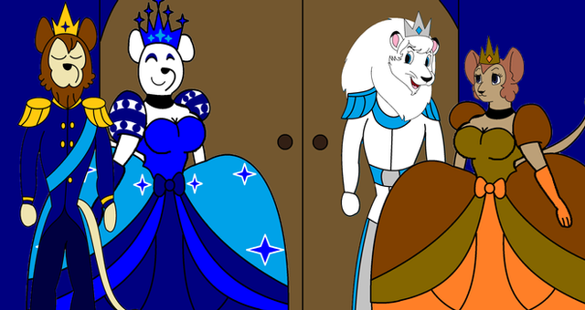 Kimba and Kitty introduce Wolf to Kitty's brother, Laman.Wolf Avlar Fursona (lion form) belongs to .