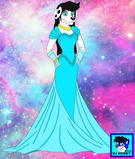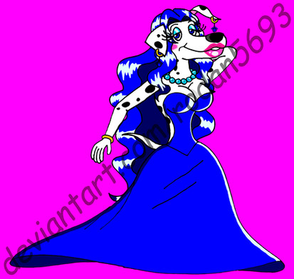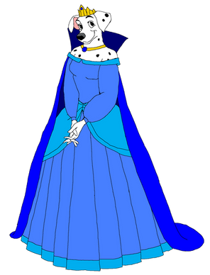 After Pongo (from Disney's 101 Dalmatians) becomes the King of all Dalmatians on Earth, he gave his wife Perdita a pretty dress, making her his beautiful Queen.Related content