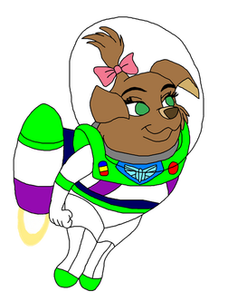 Lady in a space ranger suit.Lady (Lady and the Tramp) and Buzz Lightyear (Toy Story Franchise and Lightyear Movie) belong to Disney.