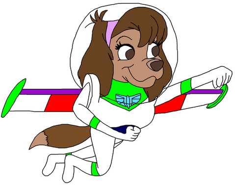 Lady in a space ranger suit with wings out.Lady (Lady and the Tramp) and Buzz Lightyear (Toy Story Franchise and Lightyear Movie) belong to Disney.