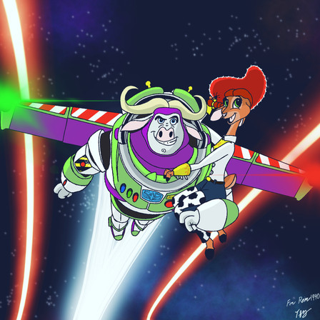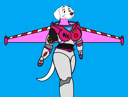 Oddball in a space ranger suit with wings out.Oddball (101 Dalmatians Franchise) and Buzz Lightyear (Toy Story Franchise and Lightyear Movie) belong to Disney.
