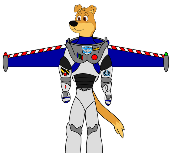 Oliver in his Space Ranger suit with wings out.Oliver (Oliver and Company) and Buzz Lightyear (Toy Story and Lightyear) belong to Disney.