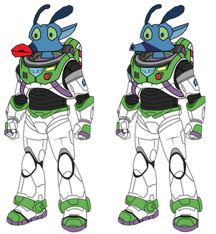 Pongo in a space ranger suit.Pongo (101 Dalmatians) and Buzz Lightyear (Toy Story Franchise and Lightyear Movie) belong to Disney.