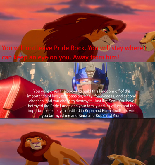 (Something I made because I was bored.)This is a little rendition of a story that coincided with my youth. A few years had passed since my Disney Adventure in 2001 and now Pongo, Perdita, Simba, Nala, Bambi and his father have grown close like a family and have found their place in the real world as long as both the real world and the Disney World remained at peace. The six stars live in their own mansion and on Pongo's birthday, they give him a car. But there was more to that car than meets the eye when they discover that it is actually a giant robot. After that robot saved them from an evil robot, they meet up with the heroic Optimus Prime and his fellow Autobots who explain that the Decepticons and their heartless leader Megatron are planning to conquer the Universe. With their help from the six Disney Stars, the Autobots and their furry friends team up to defeat Megatron and his Decepticons. The six animals didn't know it at the time, but Optimus Prime had saved my life when I was 10 years old, but they wouldn't know until I met up with them in the Foxy Kingdom.