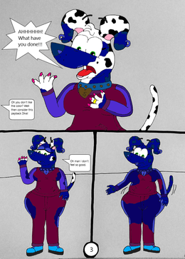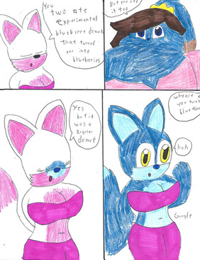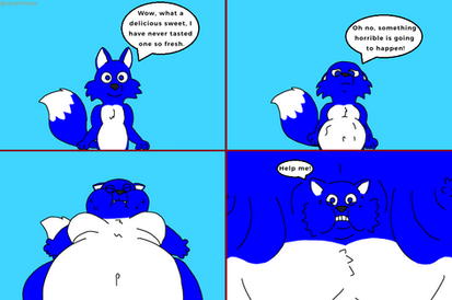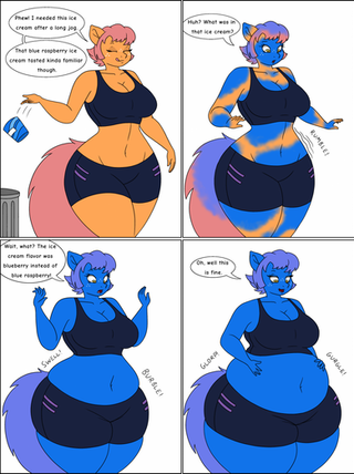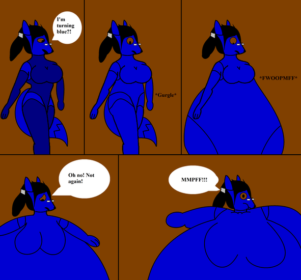 A request by .Here, Wolf (in his female form and wearing his latex) has a blue sweet, given to him by Rachel. When Wolf eats it, he finds it very tasty but starts to turn blue.