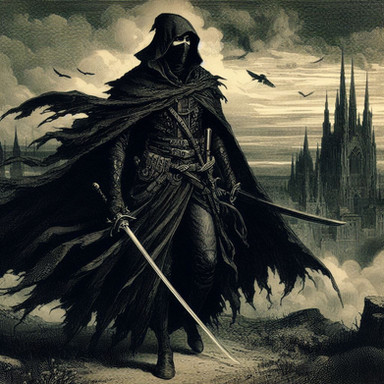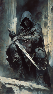#armor #character #city #cloak #cloakedfigure #conceptart #digitalpainting #fantasycharacter #originalcharacter #perched #kritaartwork