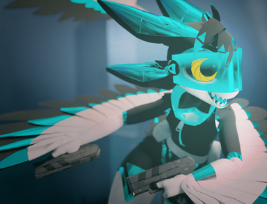 #2d #3d #blender #render #3dartwork #vrchat #basedvulpine #anthropomorphic #baseballbat #cityscape #goggles #rooftop #shark #techwear