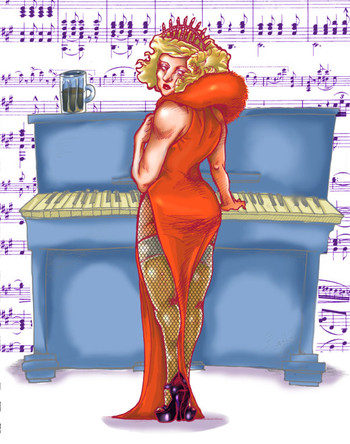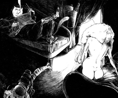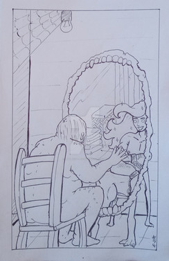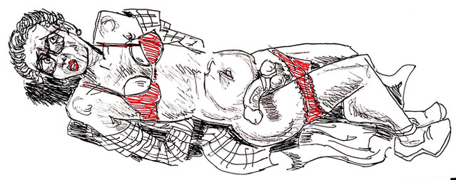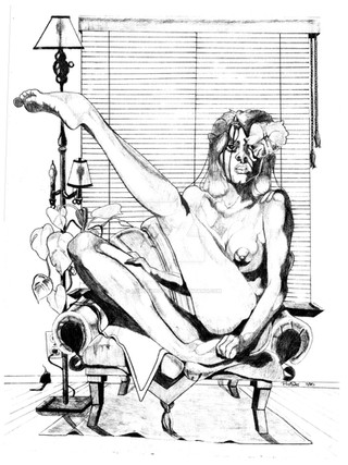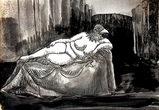 Wonderfully bizarre and offbeat. I really like the details and contrast. Great pose and expression. Beautiful linework.
