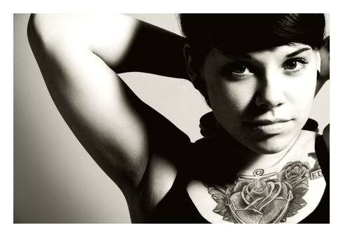 wonderful shot. i love the tones and the feel... i kind of wish she was closing her eyes though... just to add to this powerful image... i think that and maybe if she just had a little bit more of emotion in her face... more specifically her mouth. all in all great work on both sides the camera