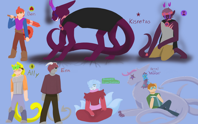 Eeeeey, I thought why not cross my favourite Youtubers with my favourite cartoon! These are some Yogs characters as Gems from the cartoon 'Steven Universe'. My god, did I ever need to do some research for this. I'll probably do more, maybe, possibly... I'd need to settle on gems (and fusion gems erk) for some of the others if I do.Is the text hard to read? If it by chance is, I will list the characters and what gems/fusions they are down here: