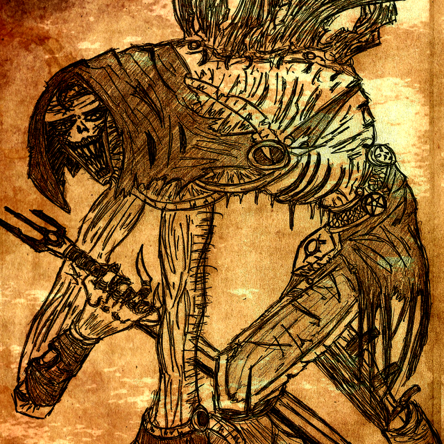 Anyone who faced the Bearers of the Sacred Flesh in battle was invariably defeated, for these warriors from the race of sercehins don't know mercy. Their bone armor is an unbreakable barrier for enemy weapon. Their power is immeasurable; a hundred human warriors are not worth the slightest drop of blood boiling under the bone armor of the sercehins.But there are times when even such great warriors as Bearers of the Sacred Flesh cannot withstand the power of their enemy. For Dero the Bleeding, the so-called Monster of Pestilence has became such an enemy. A gigantic monster, with a hundred mouths located all over the skinny body, instead of blood that Dero could absorb even through the slightest wound of the enemy, thereby increasing his strength and healing the injuries, the Monster of Pestilence had a poisonous ichor that poisoned any life that was it spilled on. Possessing indestructible health, the Bearer of the Sacred Flesh was able to resist the poison that the wounds of the monster had spill out, although it should be noted that, nevertheless, the fighting qualities of the sercehin were seriously undermined. So, in the end, the monster was defeated, and Dero lost his left hand in that fight, while the right one was terribly crippled (later the right hand was restored).