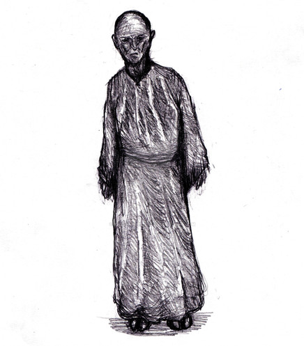 The sermons he read became filled with a terrible, incomprehensible intent minds sense. Every word carried an unclean spirit. As a result, all parishioners to leaved church . But that all didn't embarrass the fallen priest. He kept to read his sermons to an empty hall or to several unknown beings, who looked like dwarfs in brown robes. These creepy little ones became the new altar servers.