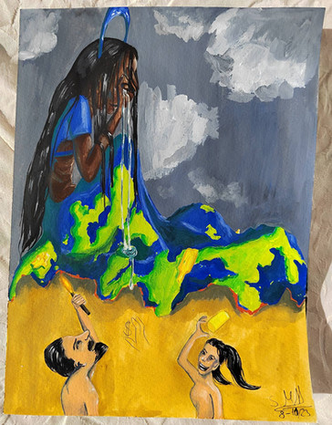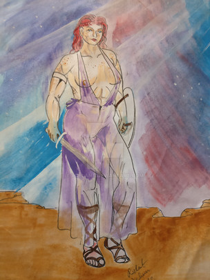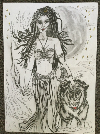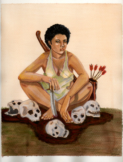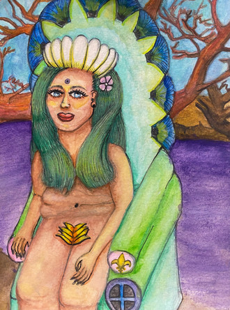 Color play trying to capture energies over literal forms. Most of my images take the shape of humanoid women, it seems.Prisma markers and watercolors on sketch paper.