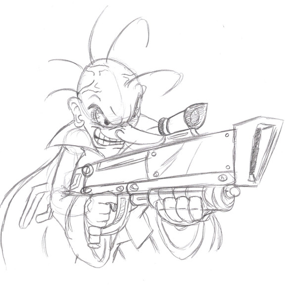 Base lifted his arm holding the revolver, bringing his second hand up to steady his aim and firing the six shots as fast as he could pull the trigger. Bael-Groth flinched as the rounds struck him, they hurt him, but they weren't killing him. Base cursed and made a dash for the door, reloading the revolver as he ran. With a single leap Bael-Groth crossed the room and landed in Base's path.