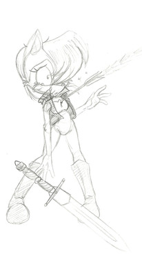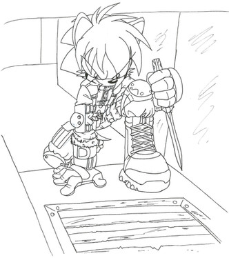 The crowd watched as the hooded Mobian raised the knife high above them in both hands, prepared to bring it down. Before they could, the doors flew open to reveal Base Hedgehog storming down the aisle, his raging bull grasped tightly in his right hand.