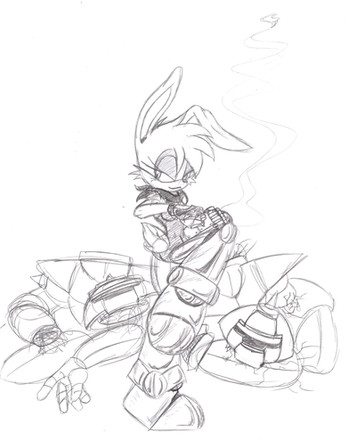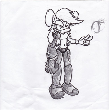 Whoo! Looooooooong time since I've drawn Sonic style and done it right. This first update is a full body picture of the anti Bunny. She have a name in the comics? Or did they just make her show up once, get killed and end of the story?As you can see, I've kept that nutty evil look she had with Ace, that,"Your neck is pretty, I'm gonna break it" look.