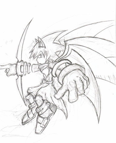 Well, if you couldn't tell from my last Scrap, I'm trying to re-design Base's family sword from a rapier style longsword to a cutlass/basket hilt broadsword combo.Still working at it.