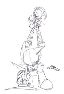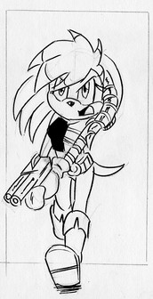 With this change of all events, Base never ran away from Mobotropolis, and was never trained the way he was, instead this one was raised to be a member of the Mobian Forces. He can use a sword, but is more proficient with a knife and guns, as opposed to Base Prime using swords and small firearms only, as well as other melee weapons.