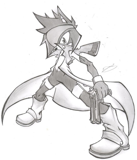 Bloody awesomeness cool pose the outfit looks wicked awesome xD Nice skecth :3