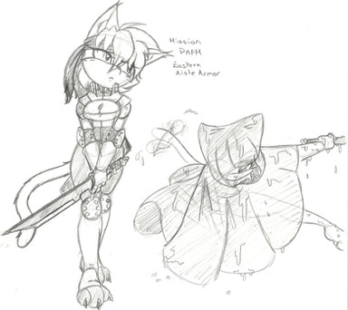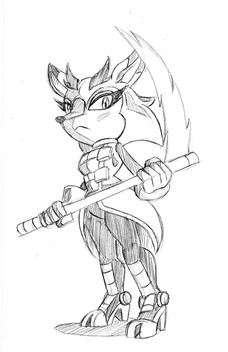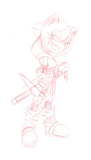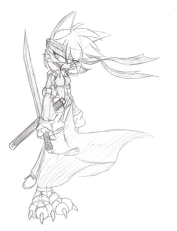 Ah, another nameless.This character was made to be the person who taught Base to use a sword, with Base's estrangement from The Kingdom after running away from Robotnik's coup, Base is found by this feline swordswoman, who raises Base like a little brother, since their ages are only a few years apart. She teaches him to be a swordsman, and to keep himself alive, since he is nothing more than normal, she teaches him to survive, to stalk, to hide, to fight, training him like a knight, a samurai, and a ninja.