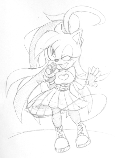 Mina's voice called above the cheer for Tails,"Also, for our lead guitarist, we have Base Hedgehog, Sonic's cousin!"