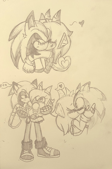 The blue hedgehog rushes forward and hugs them both hard, and they each groan,"Auntie! Cousin! You came!"