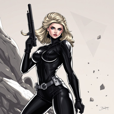 #fanart #marvelcomics #noir #digitalart #characterdesign #superhero #gun #character #comic #comicart #eyepatch #gunslinger #oc #occharacter #spy #submachinegun #superheroine #whitehair #whitehairgirl