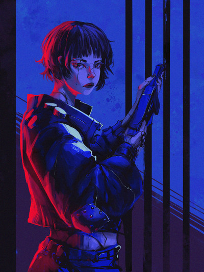 #fanart #scifi #cyberpunk #digitalart #characterdesign #cyborg #gun #badass #character #comic #comicart #cybernetics #oc #occharacter #redandblack