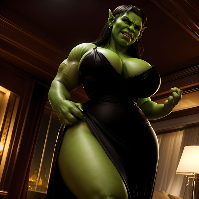 #character #comic #comicart #hugebreasts #oc #occharacter #orc #ork #reddress #orcfemale #greenskinnedgirl #giganticbreasts #orkfemale