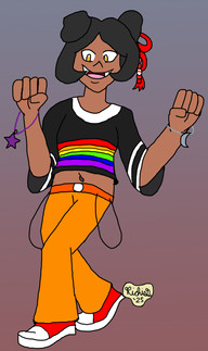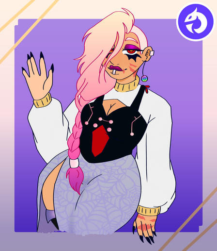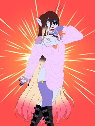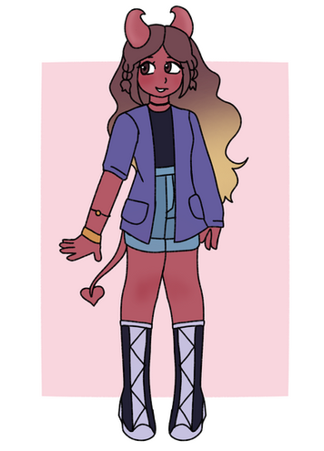 she was made February 13th 2023 and updated February 1st-2ndshe can shapeshift into any creature that has red in its genealogy, however, mainly only shifting to a koi fish or red panda. in her human appearance she keeps horns on her form because she thinks it makes her look cuter
