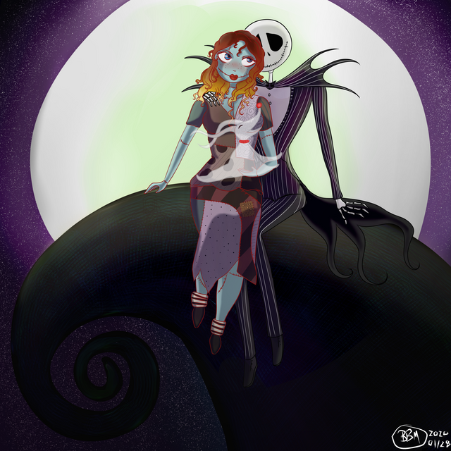 #digitalart #fanart #fullbody #jackandsally #jackskellington #sallyskellington #thenightmarebeforechristmas #tnbc #multiplecharacters #shipart