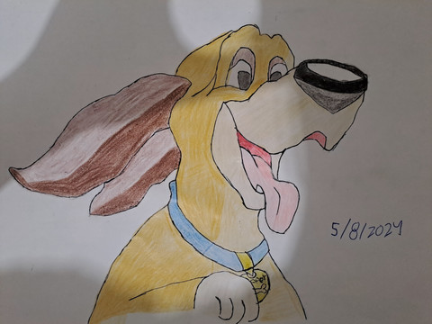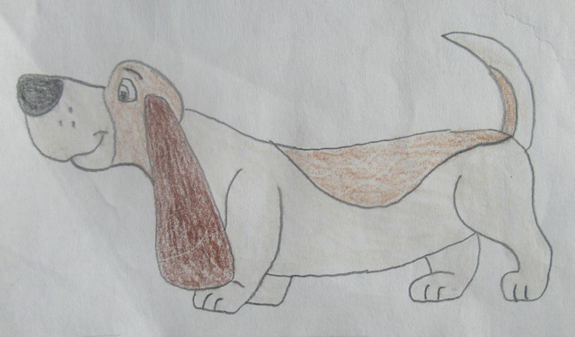 Toby, that cute, funny, and great hound who gives Basil, Dawson, and Olivia a ride.