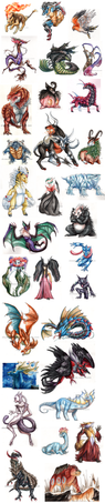 ...Now I'm kinda wishing I had arranged them from first to last, but I don't know the order for most of the middle so I guess it doesn't matter. I think my new shading technique improved quite a bit by the time I got to Beelzemon though. O=