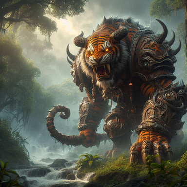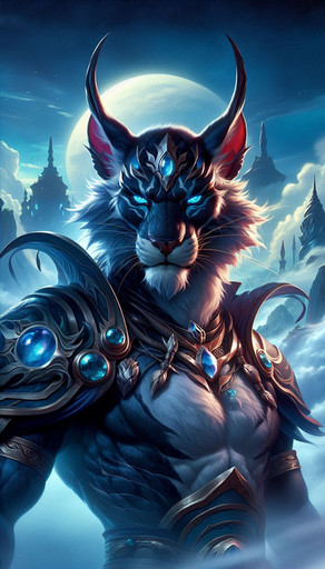 In the deep forests lived Charrow, a gigantic creature that bore a striking resemblance to a cat. Its imposing appearance was accentuated by the blue armor it proudly wore. Although it looked fearsome at first glance, Charrow was, in truth, a friendly and gentle being.
