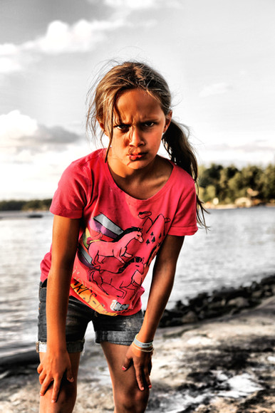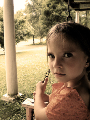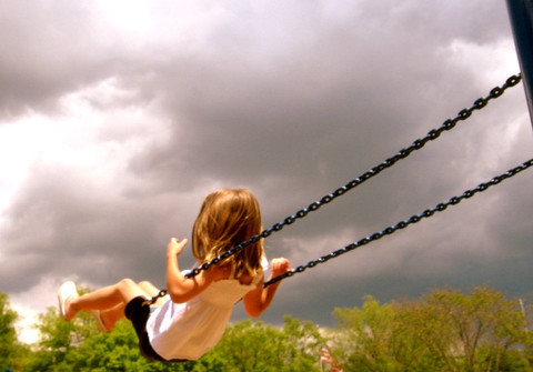 she sure looks fierce! Whenever I did that on swings I'd go so high that the momentum would cease to be a smooth swing and the swing would get to the horizontal position then curl inwards a bit before dropping with a jarring jolt, and that was generally pretty scary so I stopped at that point. Especially if the swing set tries to tip over, which it actually did on a couple of those old home sets. Or, I tried to jump off, and by try I mean I looked at the ground getting alternately close then extremely far away and then dragged my feet on the ground so I'd slow down to a little wimpy swing and could bunny hop off in a state of dishonour