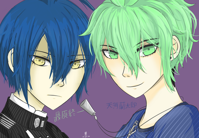 #anime #digitalart #fanart #animeboy #animeboys #collaboration #greenhair #ikemen #redhair #collaborationart #makuranodanshi #pillowboysanime #eijikijinami #shirusumochizuki #magma_studio