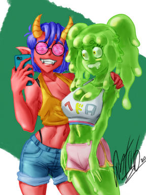 #abnormalities #fanart #female #females #jelly #oc #socialmonsters #slimemantha #mina_midori #social_monsters #artificialjealousy #fanartdigital #grouppicture #slimegirl #slimegirls