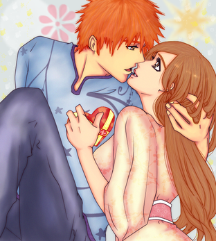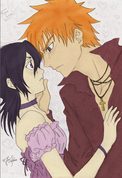 Precioso!! I adore this... I think my favorite part is their eyes particularly the eye contact going on. Also love Rukias hair. very nice job
