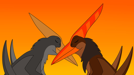 Yaay, it is completed!I tried to do the night-time "chameleon" thing where they change color at night (in Pterano's case, his body would be blue instead of brown), but I couldn't think of what color Ada would be in the dark.