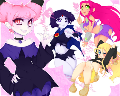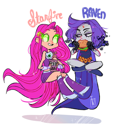 #cute #dc #dccomics #fanart #illustration #kawaii #pastel #pink #purple #raven #starfire #teentitans