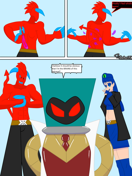Weaknesses: While He does have the standard power to regenerate lost limbs, it acts slower than average (he has better chances if he just finds the lost limb and just reataches it like a cartoon) although each part of his body's telepathicly linked, so he can still control a severed hand.