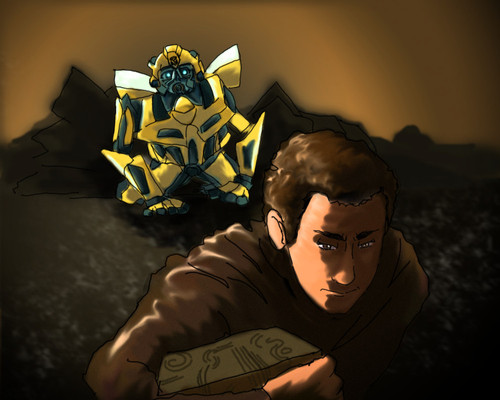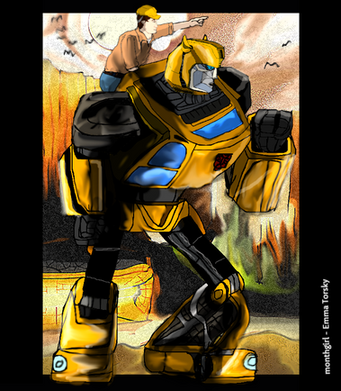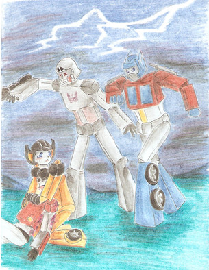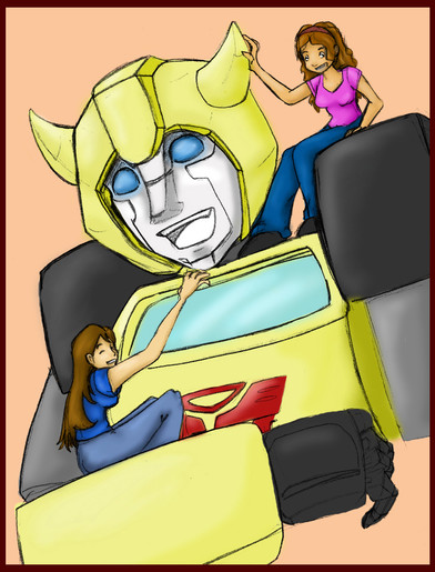The idea is that I come from the midwest. I used to go out to my friend Kristianna's out in the middle of no where on the weekends. It was seriously half an hour into nothingness. We'd walk these dusty farm roads past unused pastures and play in the dirt and weeds all day. I just thought how strange it must have been for anyone driving by to randomly see two little girls with their toys or skinned knees in that setting... and I thought what if the autobots got lost out there and had to ask for direction? I know kristi and i wouldn't have batted an eye.
